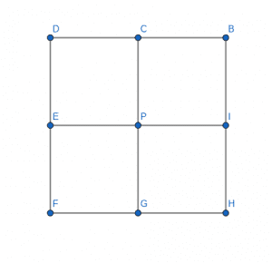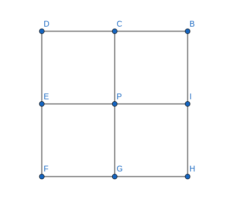 Consider the squares in picture. Clearly,$latex f(D)+f(C)+f(P)+f(E)=0 \\ f(C)+f(B)+f(I)+f(P)=0 \\ f(E)+f(P)+f(G)+f(F)=0 \\ f(P)+f(I)+f(H)+f(G)=0$Adding, we get $latex 4f(P)+2(f(C)+f(E)+f(G)+f(I))+ (f(D)+f(B)+f(H)+f(F))=0$. As both $latex CEGI$ and $latex DBHF$ are squares, the second and the third terms are zero. Thus, $latex f(P)=0$.