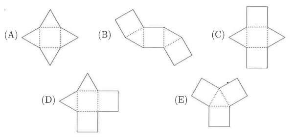 Which shape can make a pyramid if you fold along the dotted lines?