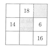 are placed so that the sums of the numbers in each row, column and diagonal are equal. What is the sum of the two numbers in the shaded squares?