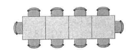 Each table is big enough to seat 4 people. The tables can be joined in a long row to seat more people. For example, a row of four tables can seat 10 people.