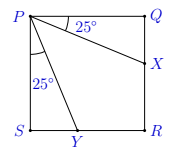 In the diagram, \(P Q R S\) is a square. What is the size of \(\angle X P Y\) ?
