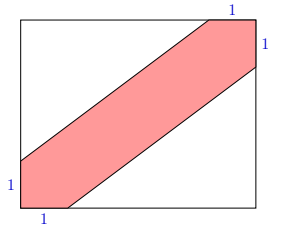 A rectangle with integer sides has a diagonal stripe which starts 1 unit from the diagonal corners, as in the diagram. The area of the stripe is exactly half of the area of the rectangle. What is the perimeter of this rectangle?