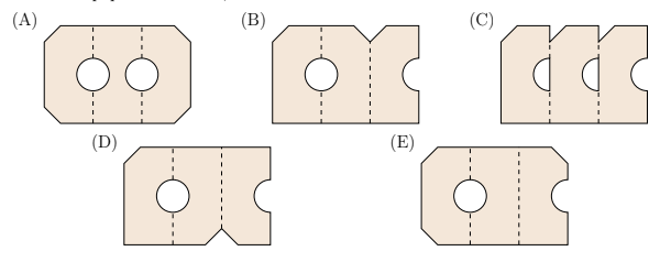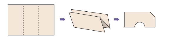 A piece of paper is folded in three, then a semi-circular cut and a straight cut are made, as shown in the diagram.
