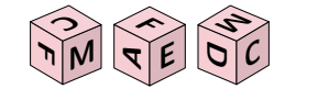 These three cubes are labelled in exactly the same way, with the 6 letters A, M, C, \(\mathrm{D}, \mathrm{E}\) and F on their 6 faces: