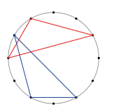 Out of modern musical theory comes the following question. Twelve points are equally spaced around a circle. Three points are to be joined to make a triangle.