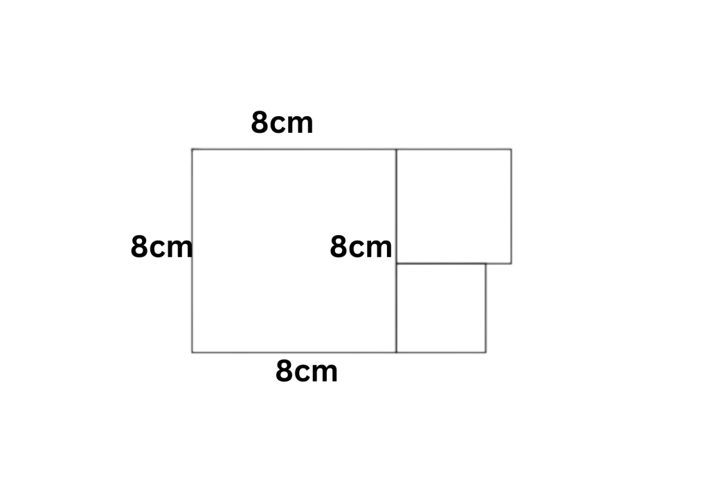 Thus the side length of the bigger square is = \(8\)cms.