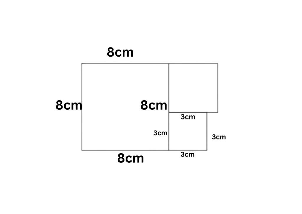 Thus the medium square has a side length of = \(8-3\) cm = \(5\)cm.