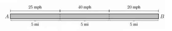 Two towns, $A$ and $B$, are connected by a straight road, 15 miles long. Traveling from town $A$ to town $B$, the speed limit changes every 5 miles: from 25 to 40 to 20 miles per hour ( mph ). Two cars, one at town $A$ and one at town $B$, start moving toward each other at the same time. They drive at exactly the speed limit in each portion of the road. How far from town $A$, in miles, will the two cars meet?