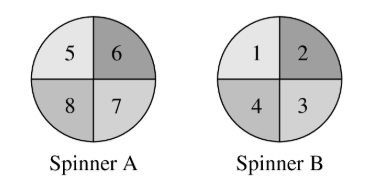 The arrows on the two spinners shown below are spun. Let the number $N$ equal 10 times the number on Spinner A , added to the number on Spinner B. What is the probability that $N$ is a perfect square number?