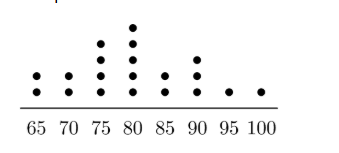 Mr. Ramos gave a test to his class of 20 students. The dot plot below shows the distribution of test scores.