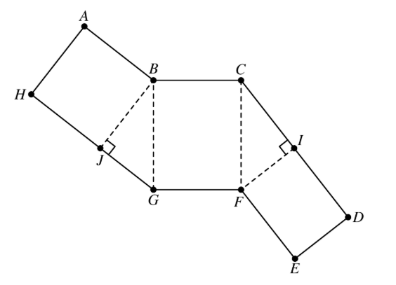 The figure below shows a polygon $A B C D E F G H$, consisting of rectangles and right triangles. When cut out and folded on the dotted lines, the polygon forms a triangular prism. Suppose that $A H=E F=8$ and $G H=14$. What is the volume of the prism?