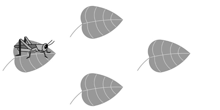 A cricket randomly hops between 4 leaves, on each turn hopping to one of the other 3 leaves with equal probability. After 4 hops what is the probability that the cricket has returned to the leaf where it started?