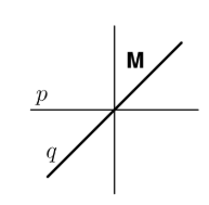The letter $\mathbf{M}$ in the figure below is first reflected over the line $q$ and then reflected over the line $p$. What is the resulting image?