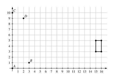A rectangle, with sides parallel to the $x$-axis and $y$-axis, has opposite vertices located at $(15,3)$ and $(16,5)$. A line is drawn through points $A(0,0)$ and $B(3,1)$. Another line is drawn through points $C(0,10)$ and $D(2,9)$. How many points on the rectangle lie on at least one of the two lines?