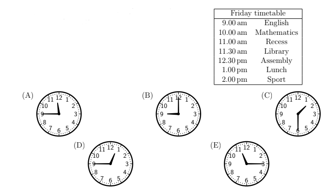Fred looked at the clock during the Library lesson. Which one of these times could the clock have shown?
