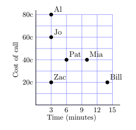 From this diagram decide whose phone call lasts longer than Pat's, but costs less.