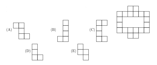 One of these shapes made of squares has been flipped and turned to make the following pattern, without any overlaps. Which one?