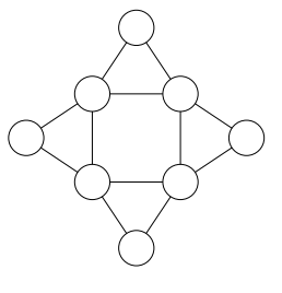 The numbers from 1 to 3 are entered into the circles in the grid shown. Two circles joined by a line may not contain the same number. There are several ways of doing this. What is the smallest possible total of the eight numbers?