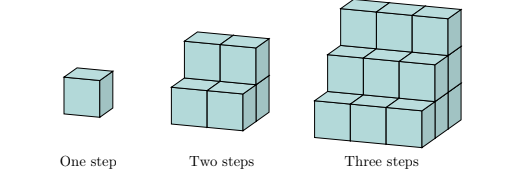 These staircases are made from layers of blocks. Each staircase is one block wider, one block longer and one block taller than the previous staircase. How many blocks are needed to build the 12 -step staircase?