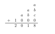 In the algorithm below, the letters (a, b) and (c) represent different digits from 0 to 9 . What is the three-digit number (a b c) ?