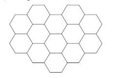Mary colours in a honeycomb tessellation of hexagons. If hexagons share a common edge, she paints them in different colours.