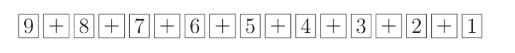 Alex placed 9 number cards and 8 addition symbol cards on the table as shown.