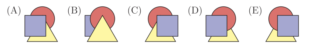 I have three cardboard shapes: a square, a circle and a triangle. I glue them on top of each other as shown in this diagram.