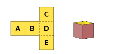 A piece of card is cut out and labelled as shown in the diagram. It is folded along the dotted lines to make a box without a top. Which letter is on the bottom of the box?