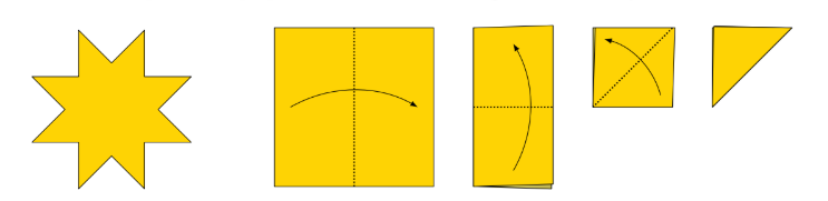 Estelle is making decorations shaped like the 8-pointed star shown. She folds a square of paper to make a triangle with 8 layers as shown.