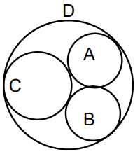 Circles A, B and C are externally tangent to each other and internally tangent to circle D. Circles A and $B$ are congruent. Circle $C$ has radius 1 unit and passes through the centre of circle $D$. Then the radius of circle B is units $\rule{1cm}{0.15mm}$.