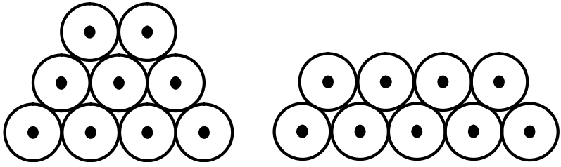 In a stack of coins, each row has exactly one coin less than the row below. If we have nine coins, two such towers are possible. Of these, the tower on the left is the tallest. If you have 2015 coins, the height of the tallest towers is $\rule{1cm}{0.15mm}$.