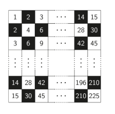 Consider the following \(4 \times 4\) squares with a \(1 \times 1\) square deleted \(shown in black\).