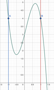 ব্যাপারটা বুঝতে একটু ছবি আঁকা যাক। ধরো x-y সমতলে একটা কার্ভ এঁকেছি। কার্ভটা x= -১ (নীল দাগ) থেকে x = +১ (লাল দাগ) অবধি দেখছি। বাকিটা মনে মনে মুছে দিতে পারো। কার্ভটার ফাংশন ধরা যাক g(x)।