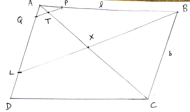 Let $A B = l, A D = b$.