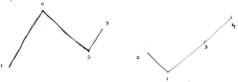 Solution: We represent the permutation sequence in a graphical form. For example, ${1,4,2,3}$ and ${2,1,3,4}$ are represented below respectively,