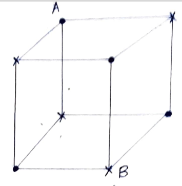 In the cube, mark the alternate vertices with "$.$" and " $\times$ " as shown in the diagram. Note that for any move, the ant alternates between a dot and a cross in each move. Suppose the ant starts from the vertex $A$ and let the diagonally opposite vertex of $A$ be $B$.