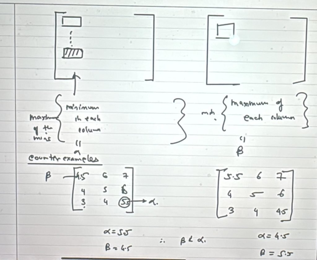 \beta = \min_{1 \leq j \leq n} \left( \max_{1 \leq i \leq m} a_{ij} \right).