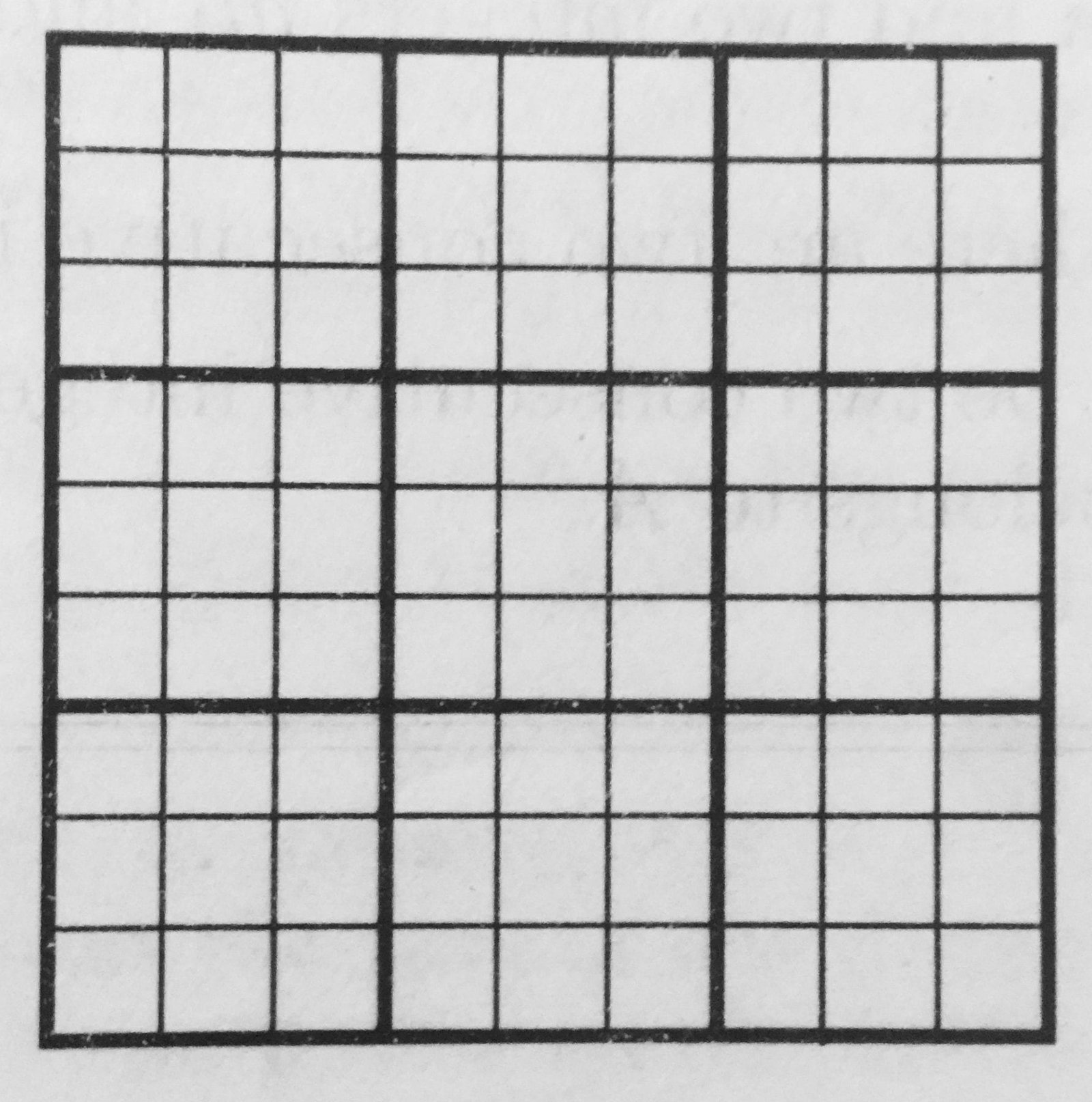 The following figure shows a \( {3^2 \times 3^2 }\) grid divided into \( {3^2}\) subgrids of size \( {3 \times 3}\). This grid has \(81\) cells, \(9\) in each subgrid.
