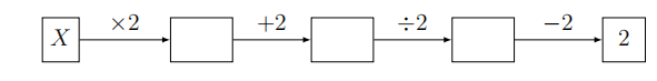Sally thinks of a number, multiplies it by 2, adds 2, divides by 2 and then subtracts 2. Her answer is 2. What was her original number?