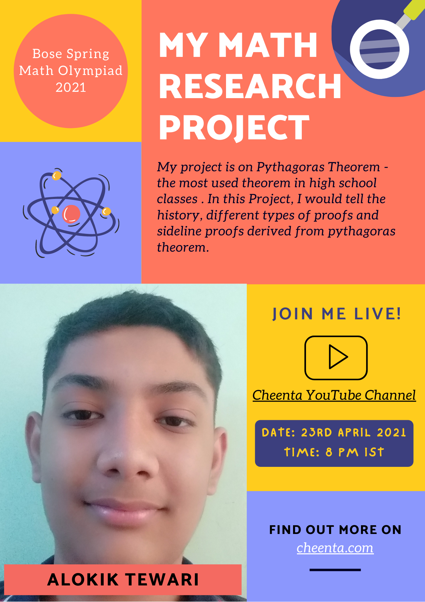 Bio: My name is Alokik Tewari and currently I am in Grade 10 . I am very passionate about mathematics and like solving problems.