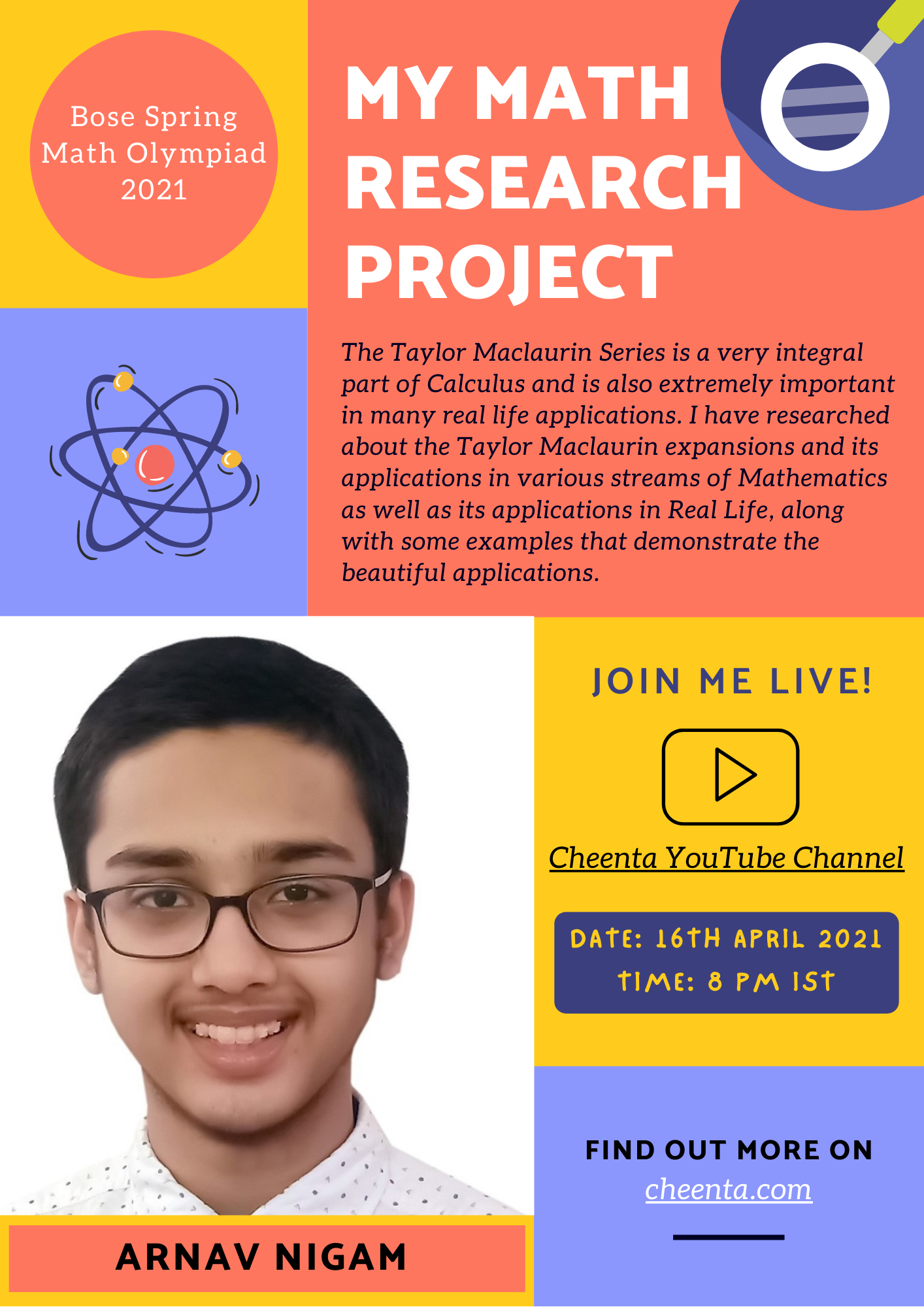 Abstract of the Project: The Taylor Maclaurin Series is a very integral part of Calculus and is also extremely important in many real life applications. I have researched about the Taylor Maclaurin expansions and its applications in various streams of Mathematics as well as its applications in Real Life, along with some examples that demonstrate the beautiful applications.