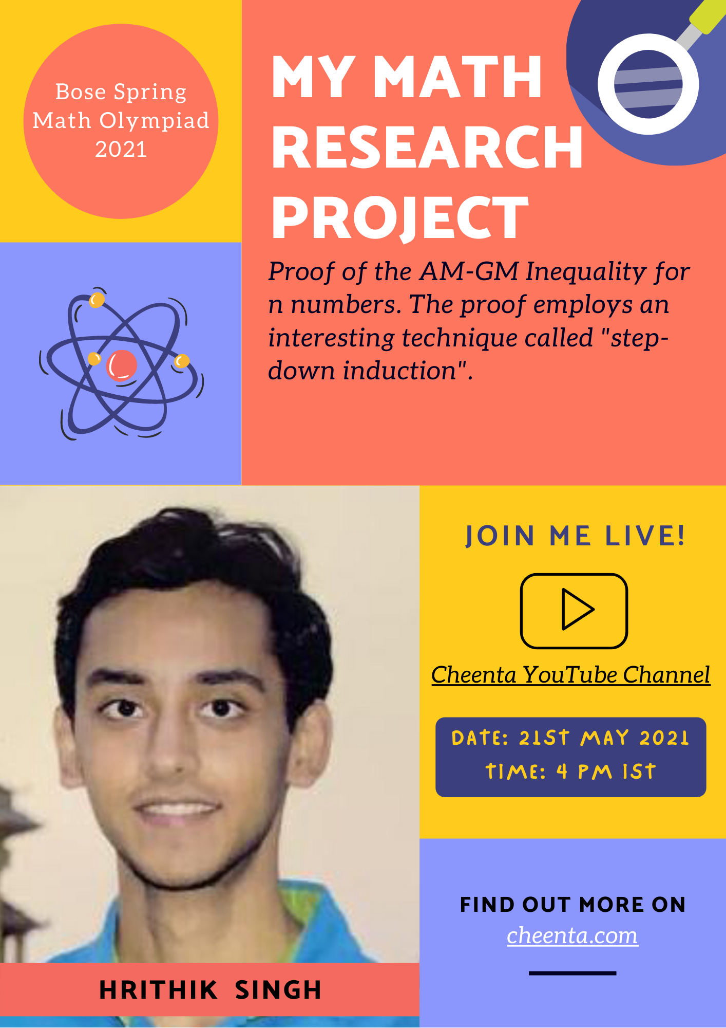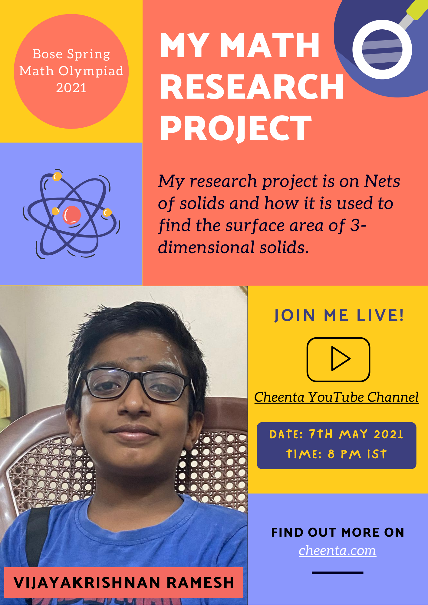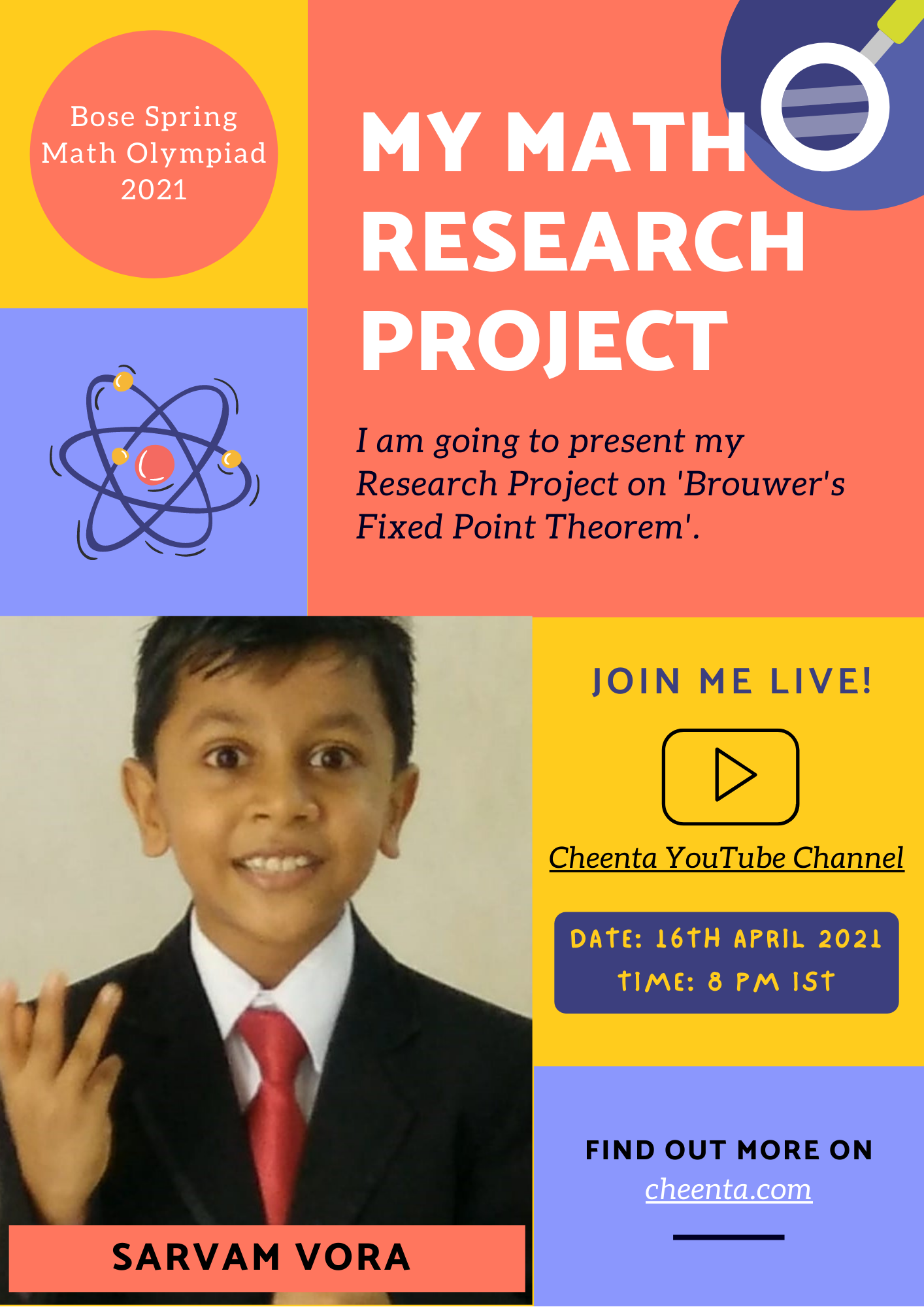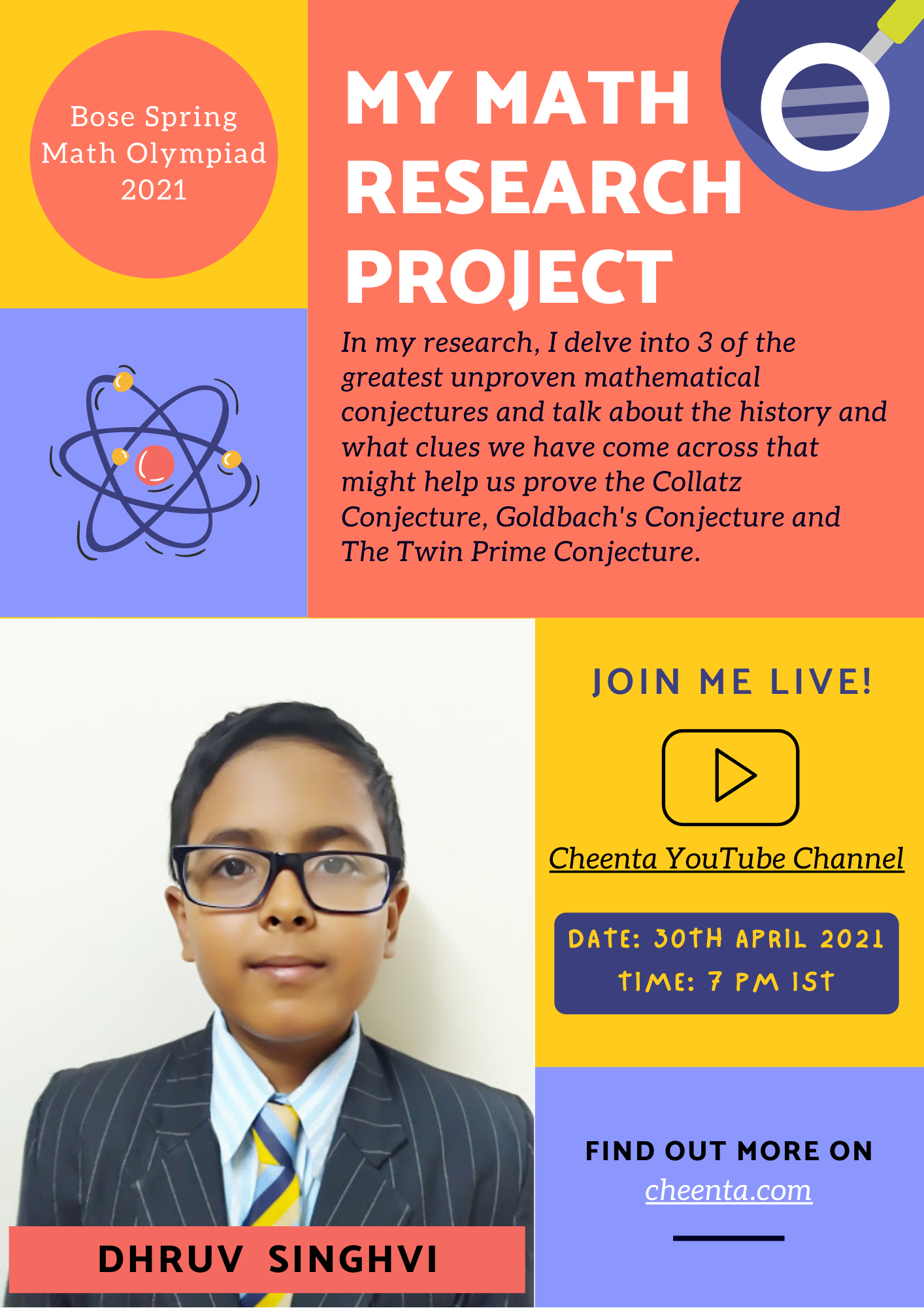 Bio: Siddharth Kumar Gopal, is a student of Class 8 and the recepient of the Pradhan Mantri Rashtriya Bal Shakti Puraskar 2020 in the field of Scholastics. He is passionate about Science and Maths and has won top ranks in several National and International Olympiads including President's Honour for Global Excellence in STEM from SIMCC Singapore, International Rank 1 in SOF Maths Olympiad and International Maths Olympiad by Unified Council.