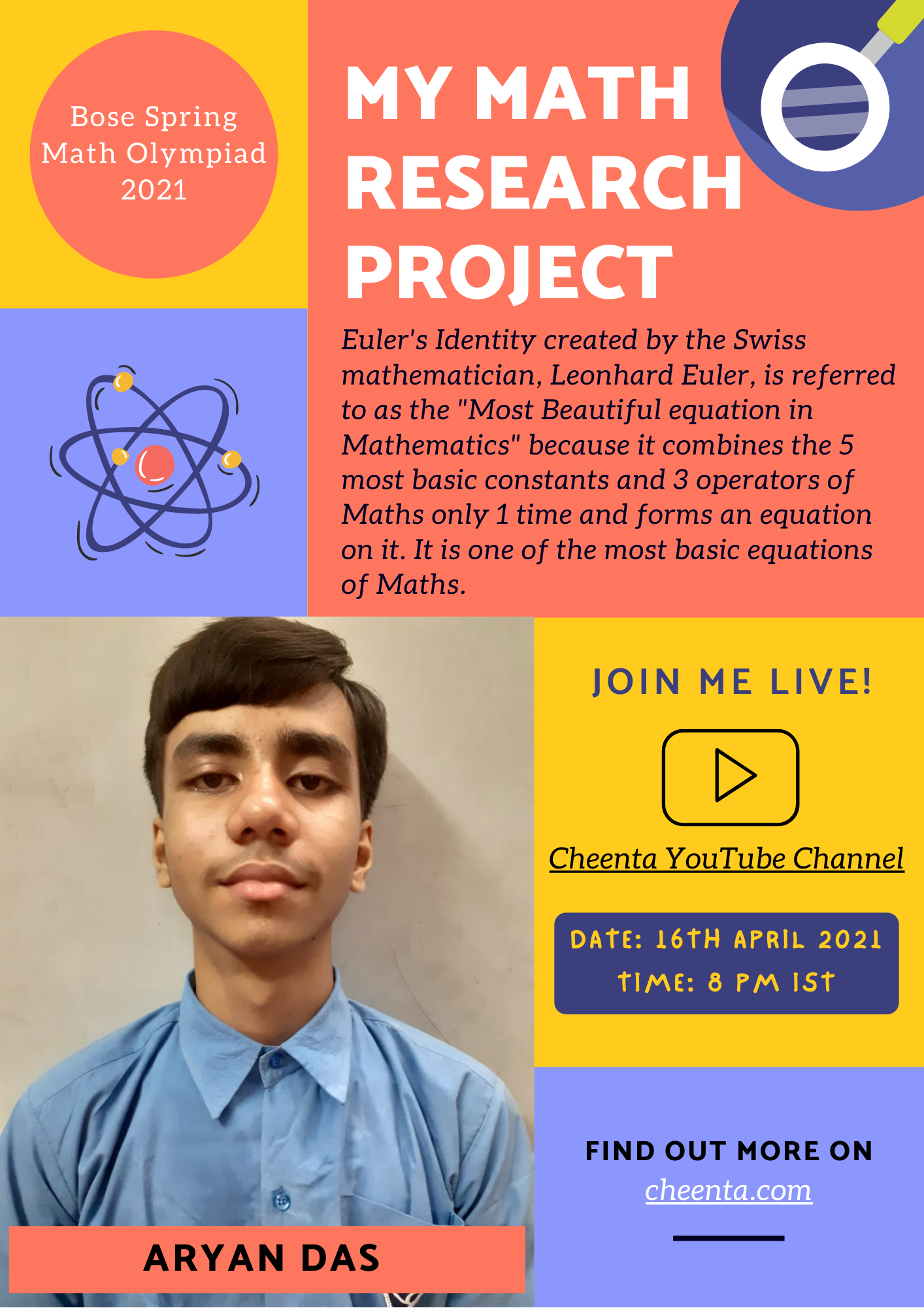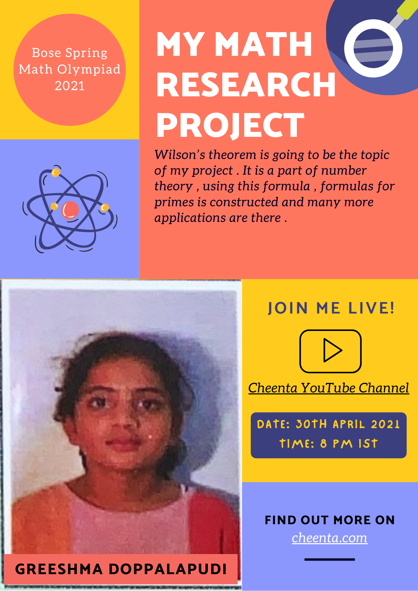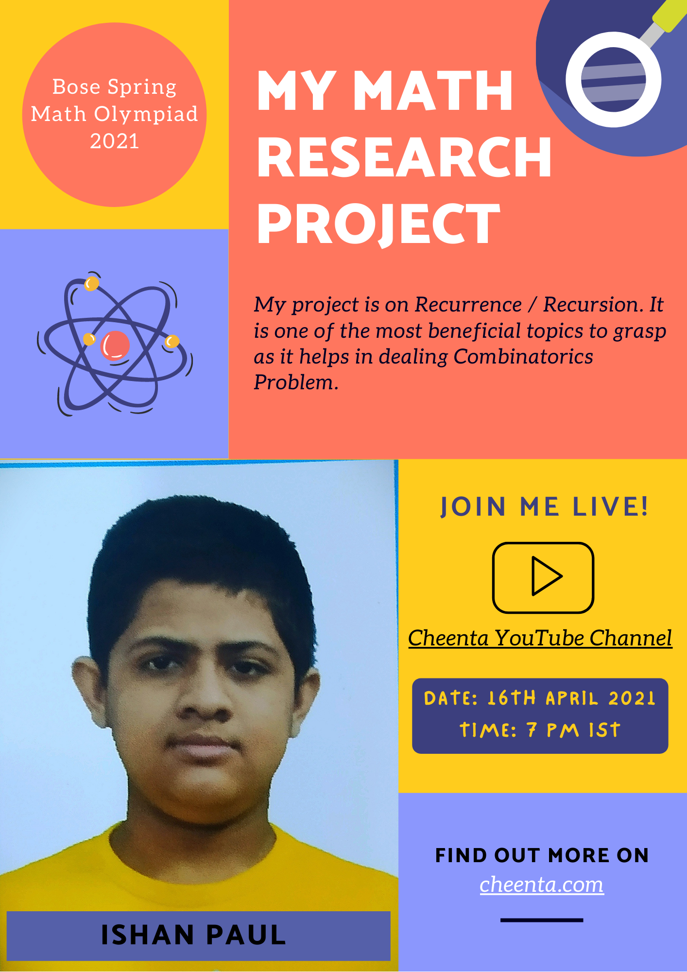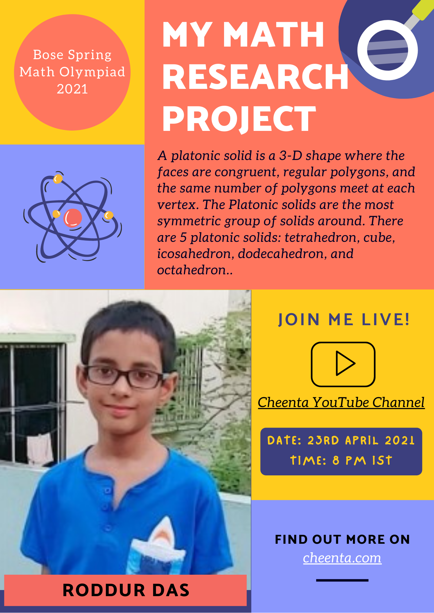 Bio: Siddharth Kumar Gopal, is a student of Class 8 and the recepient of the Pradhan Mantri Rashtriya Bal Shakti Puraskar 2020 in the field of Scholastics. He is passionate about Science and Maths and has won top ranks in several National and International Olympiads including President's Honour for Global Excellence in STEM from SIMCC Singapore, International Rank 1 in SOF Maths Olympiad and International Maths Olympiad by Unified Council.