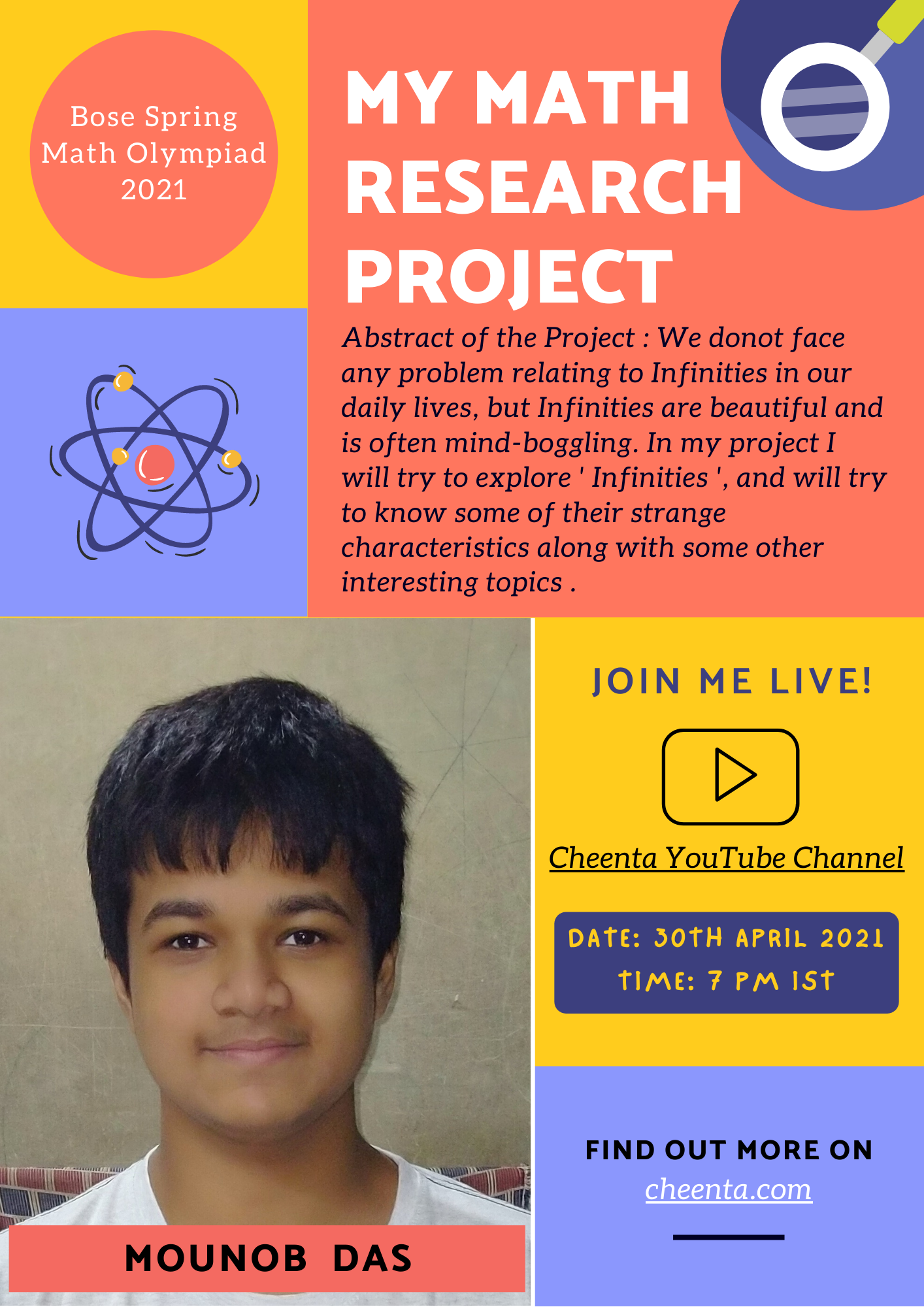 Bio: I am Mounob Das of class 10. I am studying in South Point High School, Kolkata and I love Mathematics.