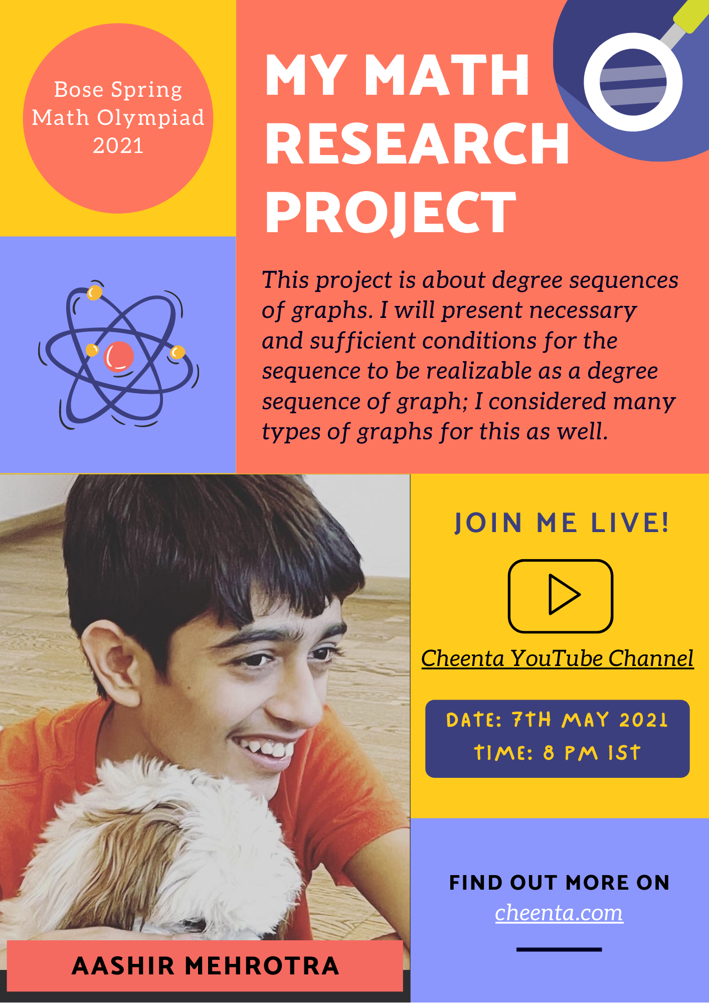 Bio: I am Aashir Mehrotra; I currently study in Grade 9 at Pathways School Gurgaon. I aspire to be a research mathematician in the near future.