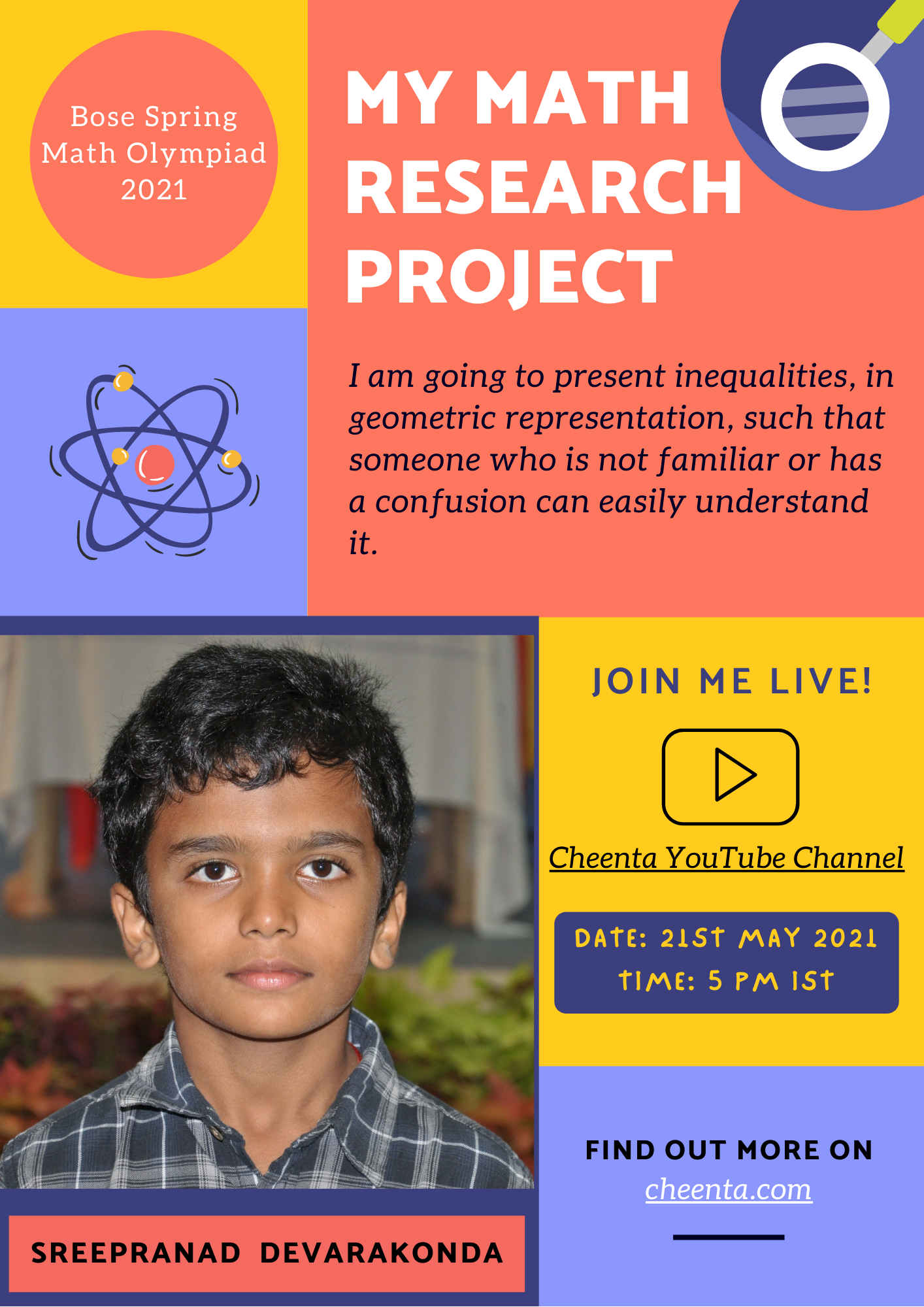 Bio: I am Abhijnan Nanda from Kolkata. I have just been promoted class 5 in DPS Megacity. I’ve been very interested in maths since I was 7.