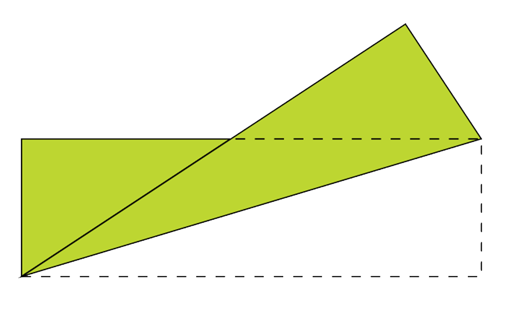 Diagonal Folding: Folding divides the rectangle into two congruent triangles. Upon folding, a pentagon is formed with overlapping areas.