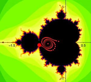 It all started when Dave Boll was trying to see if the neck of the mandelbrot set ($c=-0.75+i\cdot 0$) is infinitely thin or not. We was trying to find this by taking a number $\epsilon $, which is as small as we want (in simple terms $\epsilon \to 0$) and apply the recurrence relation $z = z^2 + c$ where $c$ is taken as $c = -0.75 + i\cdot \epsilon$.