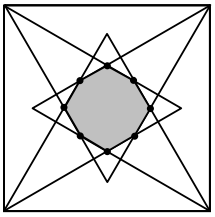 On the inside of a square with side length 6 , construct four congruent isosceles triangles each with base 6 and height 5 , and each having one side coinciding with a different side of the square. The area of the octagonal region common to the interiors of all four triangles is $\rule{2cm}{0.15mm}$