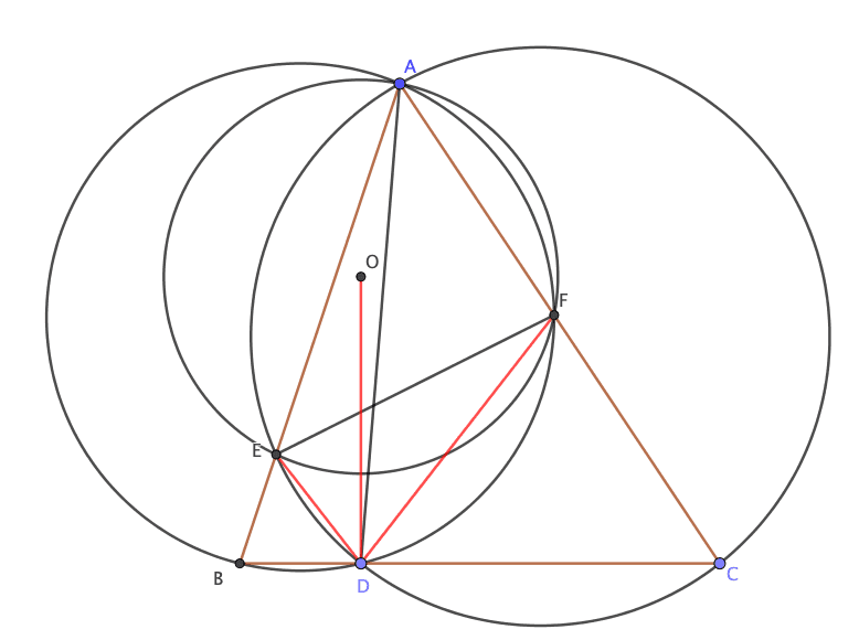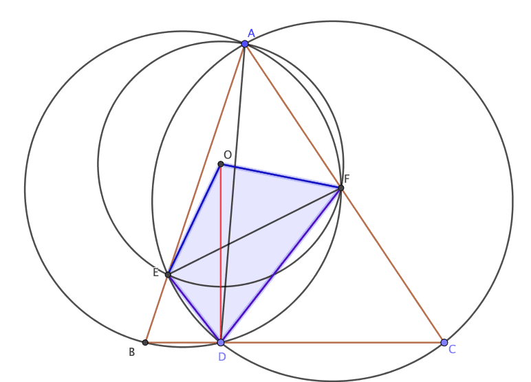 Therefore $ \angle EDF + \angle EAF = 180^o - 2 \times \angle A + 2 \times \angle A = 180^o $. This implies quadrilateral OEDF is cyclic.